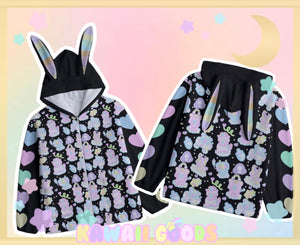Dreamy Cloud Babies Bunny Fuzzy Hoodie Sweater (Made to Order) black