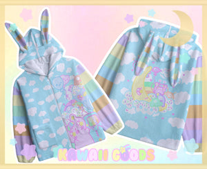 Emotion Bear And Kikko TV Bunny Fuzzy Hoodie Sweater (Made to Order)